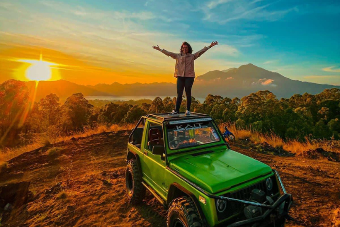 Beautiful tranquility watching the sun rise at the top of Mount Batur.